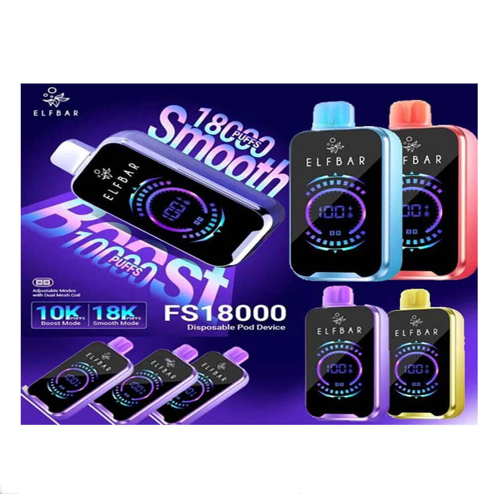 Experience 18,000 ultra-smooth puffs with the Elf Bar FS18000 – a sleek, high-capacity disposable vape packed with bold flavor, 50MG nicotine, and a rechargeable design for extended satisfaction.